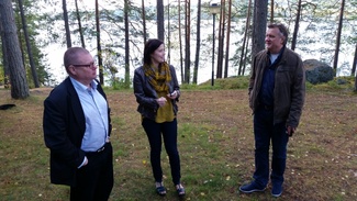 ![]() Ylen hallintoneuvoston puheenjohtaja Kimmo Kivelä, journalistiliiton puheenjohtaja Hanne Aho ja tuottaja Pertti Ruohonen keskustelivat journalismista kesällä 2015. |