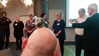 ![]() Yhdistyksen edustaja ikuisti liiton Marja Palmusen eläkejuhlat huhtikuussa 2016. |